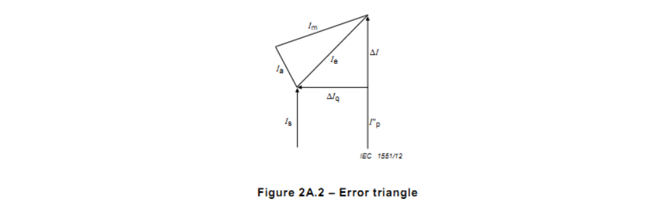 Thus, for a current transformer without turns correction and under conditions where a vector representation is justifiable, the ratio error, phase displacement and composite error form a right-angled triangle.