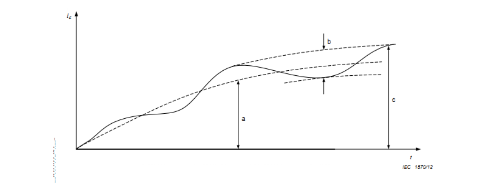 If the real Ktd value of the current transformer has to be determined, the duration of the energization and/or secondary burden shall be increased so that the measured instantaneous error current reaches the limiting value for the accuracy class concerned (Table 206). For class TPZ, linear interpolation is used to determine the instant at which the limiting value of the a.c. component of the error current is reached.